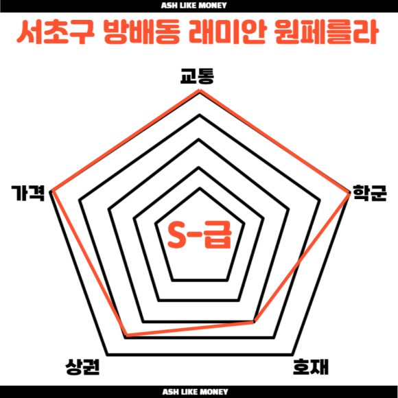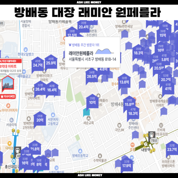 방배동 살쾡이가 살던 서초구는 어느새 대한민국 최고의 아파트들이 모여있는 곳이 되었다. 반포, 한강뷰를 따라 생긴 래미안 트리니원, 래미안 원펜타스, 래미안 원베일리, 래미안 퍼스티지의 "쿼드라 래미안" 아파트들은 평당가가 2억 정도 되는 최고급 아파트이다. 해당 입지에는 반포 최고 아웃풋의 학교들도 즐비한데 서울반포초와 "세화여고", "세화고"가 있다. 세화고와 세화여고는 의대 신입생을 매우 많이 배출한 학교로 전국 TOP 10 안에 드는 고등학교이다. 그 외에도 신반포 아파트들이 재건축을 진행하며 재건축 기대감으로 많이 올랐다.