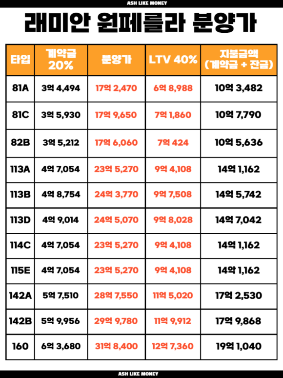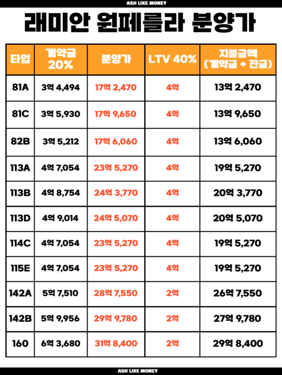 25년 1월 분양을 시작한 래미안 원페를라로 그때 당시엔 높은 분양가라고 지적받았었다. 래미안 원페를라는 당시 방배6구역을 재건축으로 공급하는 단지로 지하 4층~지상 최고 22층 규모의 아파트이다. 총 1,097세대에 분양가는 1평당 6,833만원 수준으로 전용 59타입은 16억~17억 9천만원, 전용 84는 22억~24억 5천만원, 전용 106타입은 28억~30억, 전용 120타입은 30억~31억 8천만원이었다.