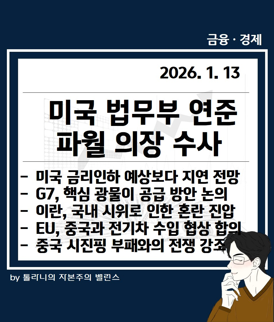 01. 미국 법무부, 연준 파월 의장 수사. 파월은 정치적 탄압에도 임무 완수 강조
