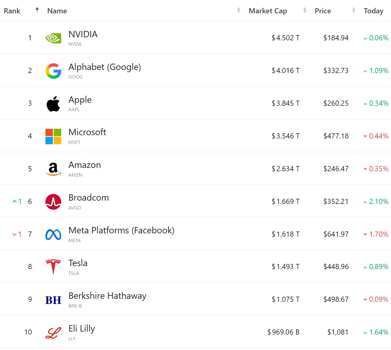 엔비디아는 전일 대비 +0.06% 상승하였으며, 알파벳 +1.09%, 애플 +0.34%, 테슬라 +0.89% 상승한 반면 마이크로소프트 -0.44%, 아마존 -0.35%, 메타 -1.70% 하락하면서 거래를 마쳤습니다.