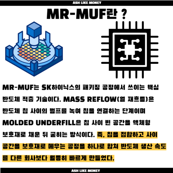 SK하이닉스가 HBM을 만드는데 1시간이면 나머지 회사는 8.8시간 소요된다는 것이다. 반도체 업계에서는 웨이퍼를 투입해 공정을 거쳐 칩이 나올 때까지의 소요 시간은 TAT라고 하는데 이는 하이닉스의 MR-MUF 방식이 있기 때문이다. 삼성전자와 마이크론은 낮은 수율과 발열 문제가 있어 애를 먹은 적이 있지만 SK하이닉스는 12단 초격차를 통해 엄청난 속도를 자랑한다. 현재 삼성전자도 TC-NCF 방식을 개선하고 하이브리드 본딩으로 전환 중이기도 하다.