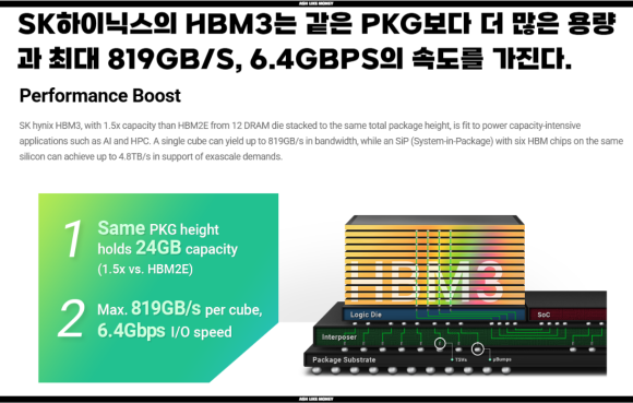 범용 D램의 빠듯한 수급 상황이 HBM 가격 협상에도 우호적으로 작용하며 AI 붐으로 HBM의 독점적 지위를 차지한 덕분이다. 특히, 엔비디아의 H100, H200, B300에 들어가면서 HBM의 최대 공급처가 되었다. HBM은 다른 D램에 비해 가격도 2~4배 높아 수익성이 높다. 그리고 SK하이닉스는 HBM3, HBM3E에서 기술, 수율 양산 능력 모두 선두주자이기에 현재 엄청난 실적과 주가상승을 보여주었다.