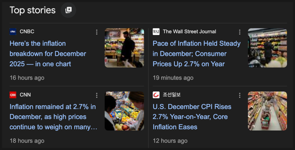 이번에 나온 미국 소비자물가지수, CPI를 보면 12월 물가 상승률이 전년 대비 2.7%로 시장 예상과 같았고, 변동성이 큰 항목을 제외한 근원 CPI는 예상보다 낮게 나왔습니다. 쉽게 말해 물가는 생각보다 안정적이었고, 그중에서도 연준이 특히 중요하게 보는 지표는 더 차분했다는 거죠. 이 결과가 미국 경제가 급격한 침체 없이 서서히 식어가는 ‘소프트 랜딩’ 시나리오에 힘을 실어줬고, 올해 추가 금리 인하 가능성도 다시 부각됐습니다.