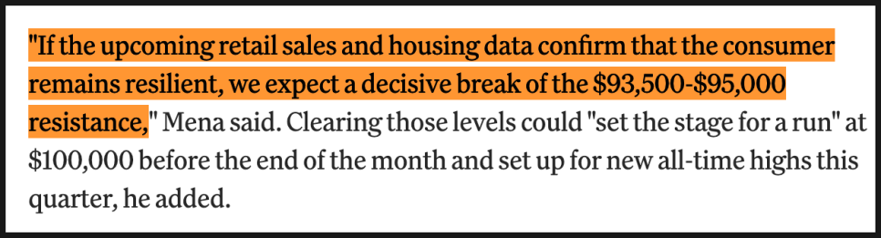 다만 향후 발표될 소매판매와 주택 지표가 여전히 미국 소비가 탄탄하다는 걸 보여준다면, 비트코인이 이 저항대를 돌파할 가능성도 충분하다는 전망입니다. 그 경우 이달 말까지 10만 달러까지 오를 수 있다는 시각과 함께, 분기 내 사상 최고가를 다시 노려볼 수 있는 환경이 만들어질 수 있다는 분석도 나오고 있습니다.