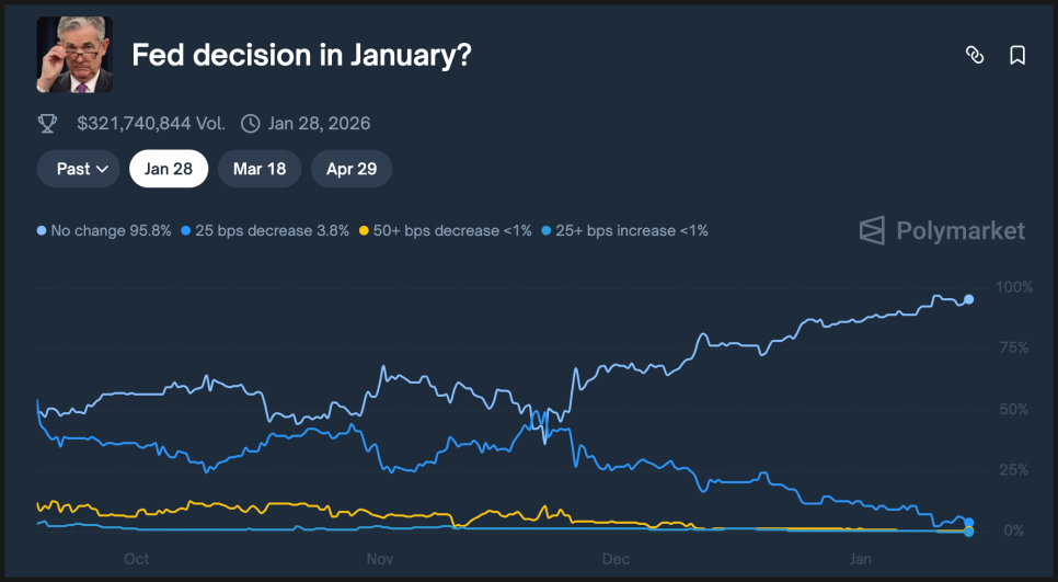 일반적으로 금리가 내려가면 현금을 들고 있을 이유가 줄어들고, 상대적으로 위험자산 선호가 커집니다. 비트코인과 다른 암호화폐도 이런 범주에 들어가죠. 다만 단기적으로 보면, 이번 달에 바로 0.25%포인트 금리 인하가 이뤄질 가능성은 아직 낮습니다. 폴리마켓 기준으로는 약 3.6%, 칼시에서는 5% 수준에 그치고 있습니다.