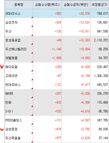 <연기금 순매수 상위 종목>