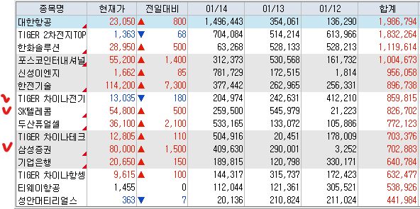 매도 : 삼천당제약 LX인터내셔널 대한항공 포스코퓨처엠 삼성전자(+92.12%) 서부T&D LSElectric 삼성증권 풀무원 SK 한화오션 포스코인터내셔널 인탑스 LG화학 한전기술 유진로봇(+102.87%) 현대로템 LG전자 엘엔에프 kodeex200 에코프로 HJ중공업 코스맥스 클래시스 케어젠 파마리서치 심택 에코프로비엠 에이피알 HD현대중공업 뉴로메카(+66.15%) 티엘비 LG에너지솔루션 F&F 엔젤로보틱스 티엘스알로보틱스