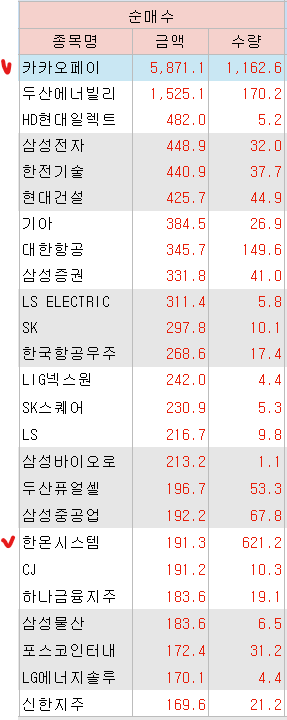 <외국인 매수 종목>