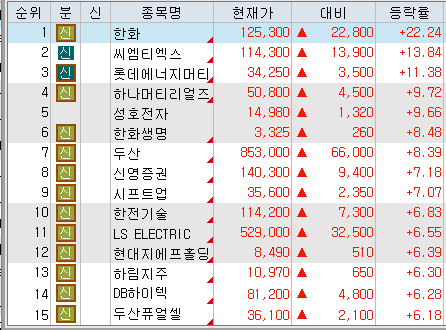한화가 인적 분할 및 자사주 소각을 결정하면서 주가 상승(한화 +22.24%)