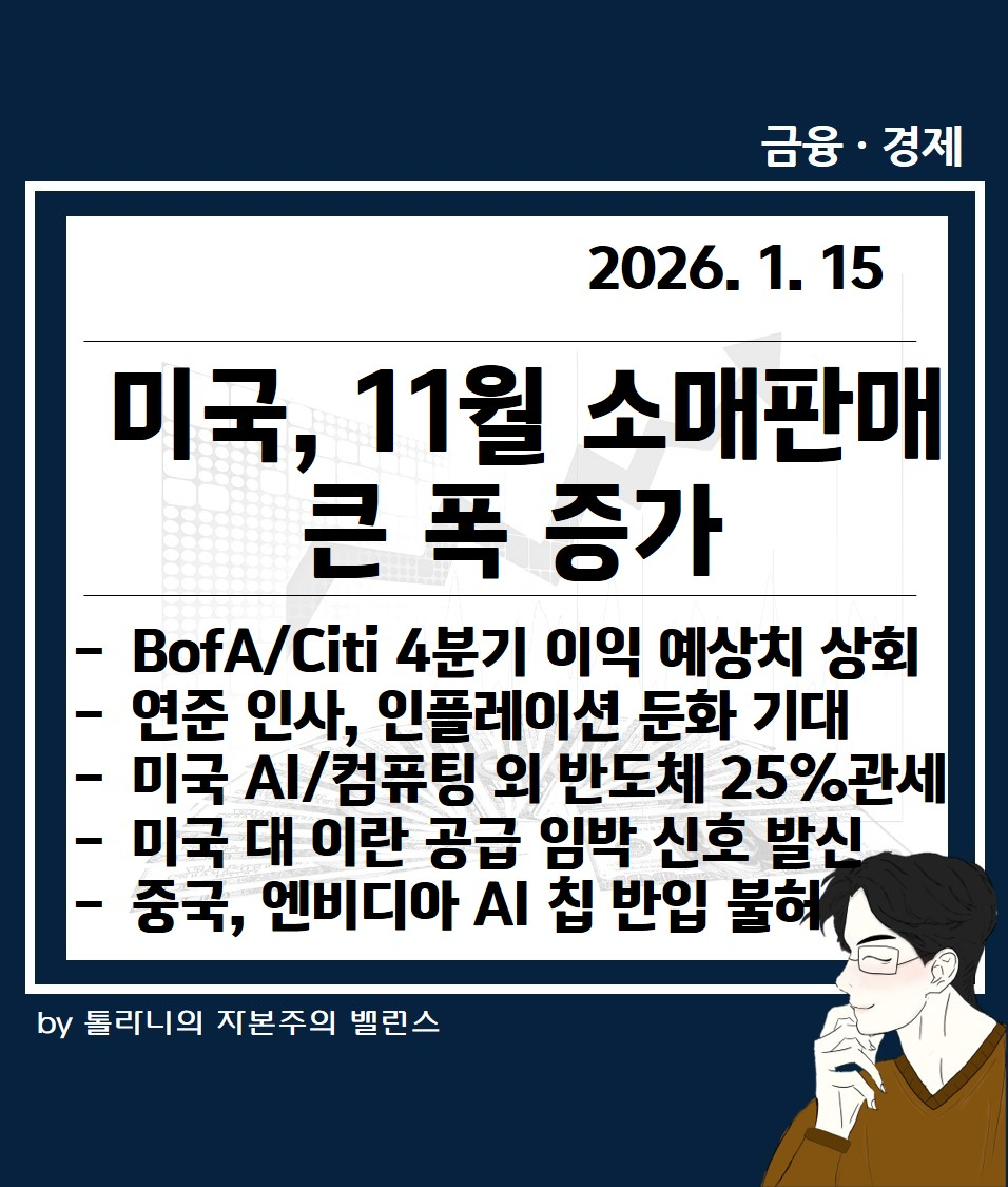 01. 미국 11월 소매판매, 전월비 증가. BofA 및 Citi 4/4분기 이익은 예상치 상회