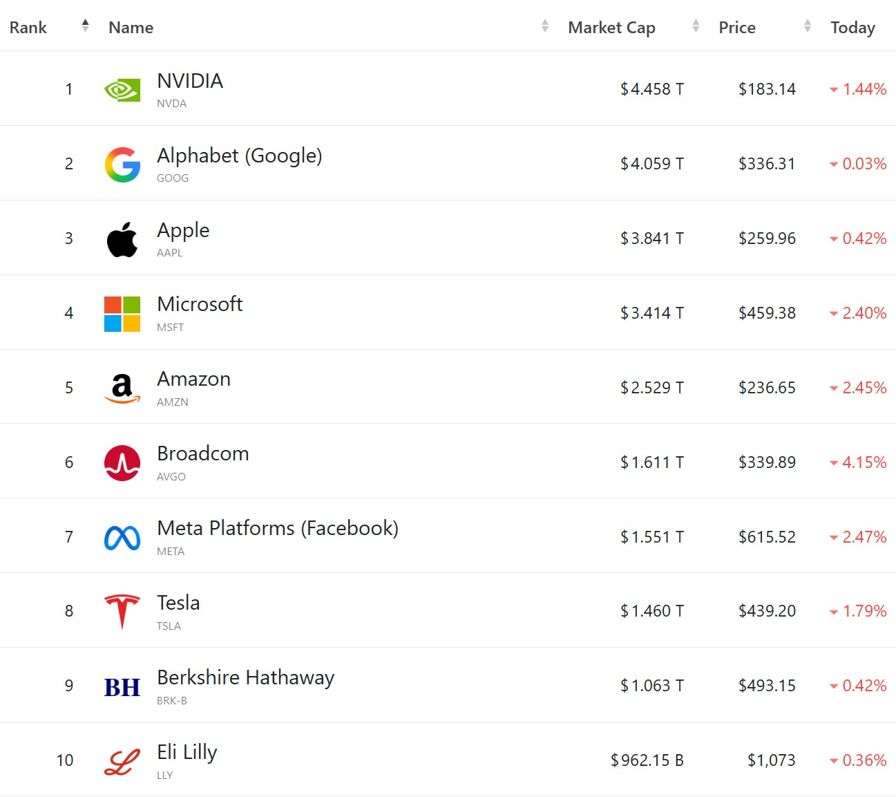 엔비디아는 전일 대비 -1.44% 하락하였으며, 알파벳 -0.04%, 애플 -0.42%, 마이크로소프트 -2.40%, 메타 -2.47%, 테슬라 -1.79% 일제히 하락 하면서 거래를 마쳤습니다.