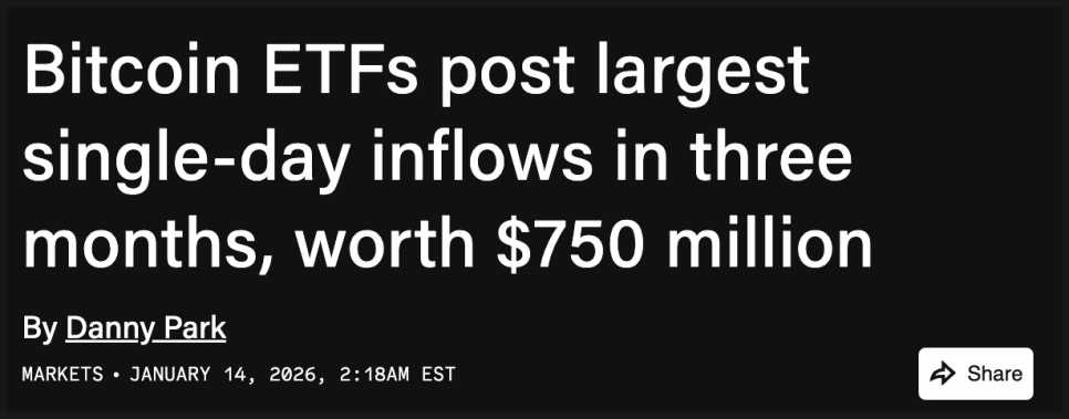 실제로 미국 현물 비트코인 ETF에는 하루 만에 약 7억5천만 달러의 자금이 순유입됐습니다. 거의 석 달 만에 최대 규모입니다. 연말 포트폴리오 조정이 끝난 뒤, 다시 비중을 늘리는 기관들이 움직이기 시작했다는 신호로 해석할 수 있습니다.