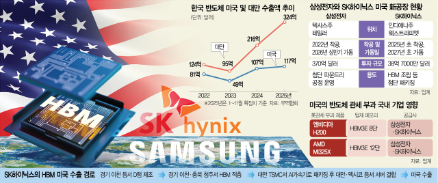 미국이 관세를 부과하는 엔비디아의 H200과 AMD의 MI325X에는 모두 삼성전자와 SK하이닉스의 고대역폭메모리(HBM)가 탑재되고 있기 때문