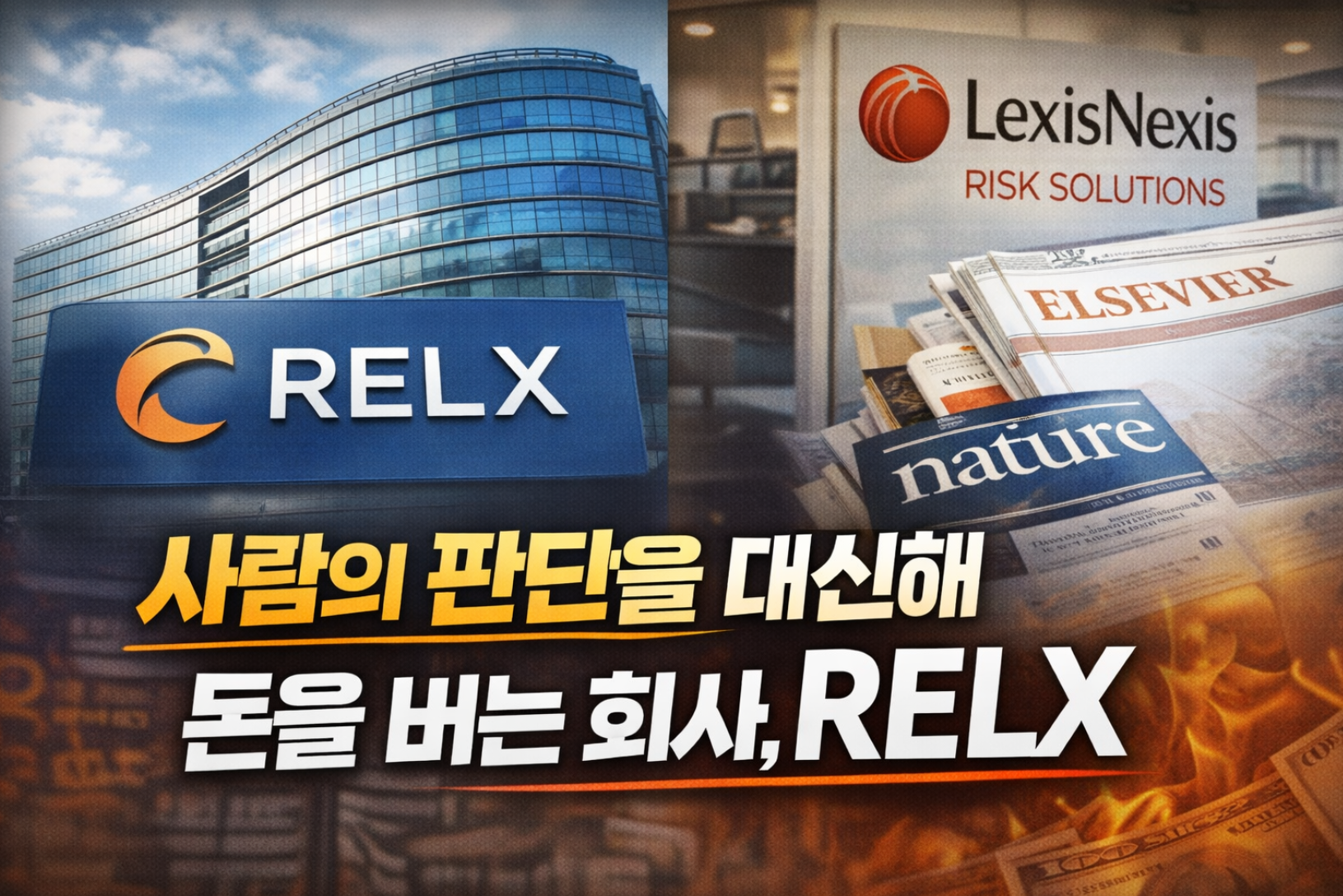 RELX는 영국에 본사를 둔 글로벌 데이터·정보 분석 기업입니다. 법적으로는 영국 런던에 기반을 둔 FTSE 100 상장사이며, 동시에 미국 뉴욕증권거래소(NYSE)에도 ADR 형태로 상장돼 있습니다. 겉으로 보면 출판사처럼 보이지만, 실제로는 전 세계 정부·금융기관·기업들의 의사결정을 떠받치는 데이터 인프라 기업에 가깝습니다.