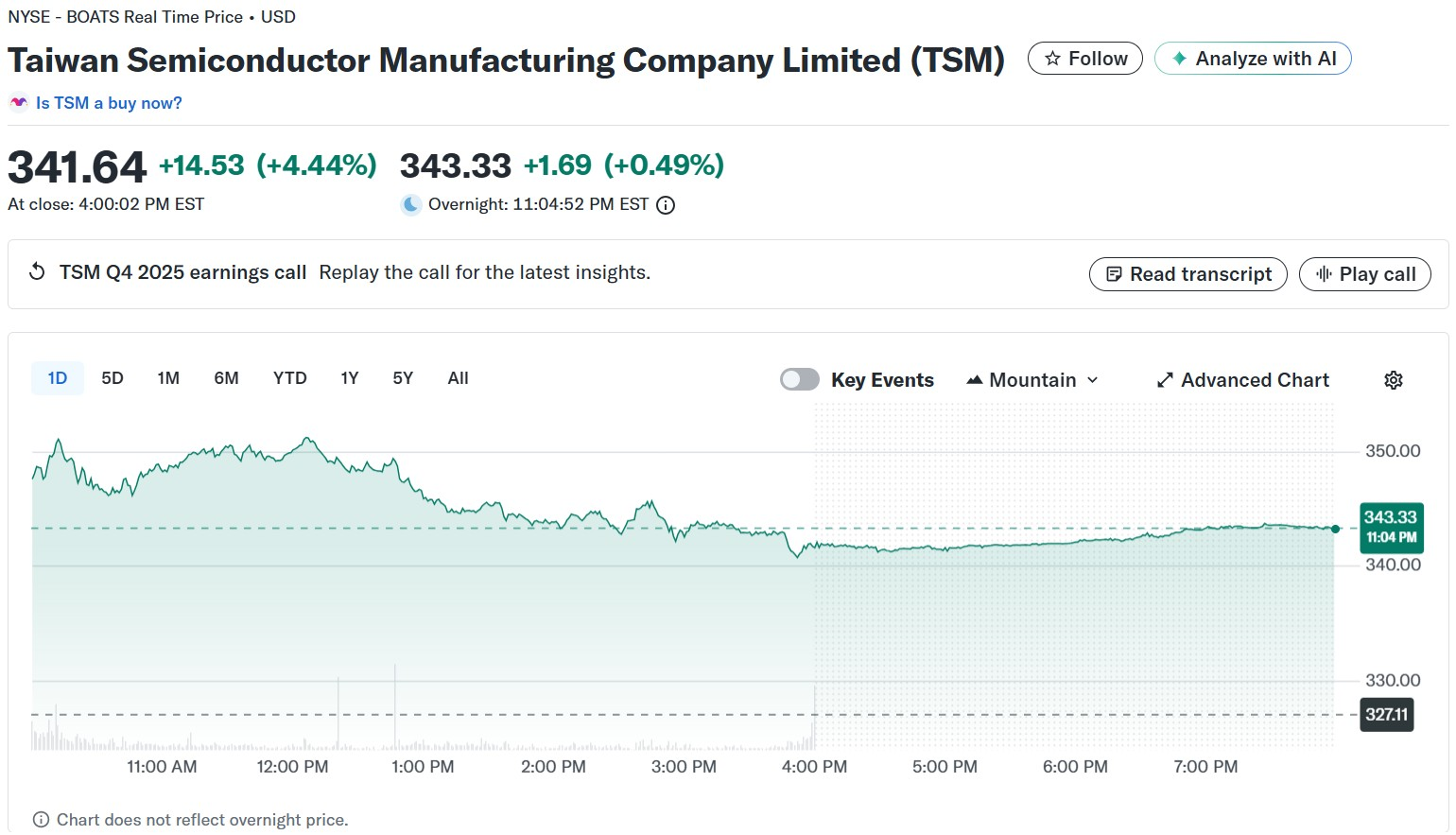 ● TSMC 주가는 4.4% 급등했다. 반도체 ETF인 반에크 반도체 ETF(SMH)는 2.1% 상승했고, 엔비디아(2.1%)와 마이크론테크놀로지(1.00%)도 올랐다.