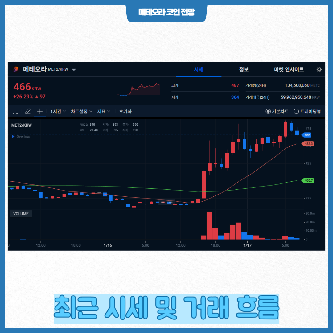 2025년 하반기 이후 메테오라 코인은 국내외 주요 거래소에 상장되며 직접적인 시세 움직임을 보였습니다. 상장 직후에는 가격 상승세가 관찰되기도 했지만, 이후 조정 국면으로 약세 흐름이 나타났다는 보도도 있습니다.