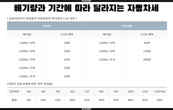 자동차세는 자동차를 소유한 사람들이라면 누구나 내야 하는 세금이다. 부모님 차를 타고 다니는 사람들은 상관없지만, "내가 보유하는 자동차 = 내 명의"의 자동차가 있는 사람이라면 실제로 운전을 잘 하지 않더라도 자동차세를 내야 한다. 기본적으로 후불로 내는 것이 원칙이며 소유한 날짜 하루하루를 허투루 무시하지 않고 "칼 같이" 계산하여 세금을 부과한다. 후불이기 때문에 내가 자동차를 들고 있다가 다시 없애버린다고 해도 자동차세는 날아온다.