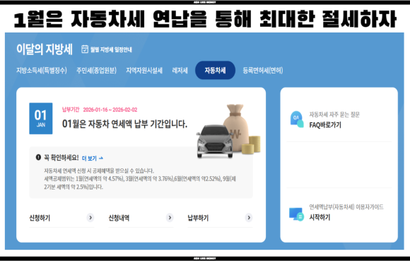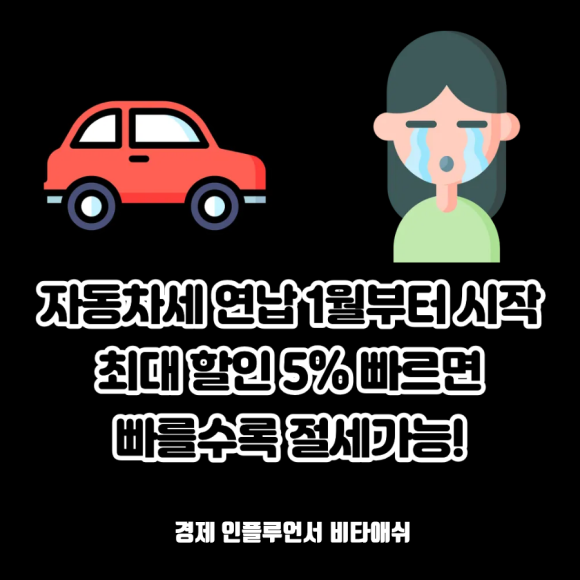 자동차는 매년 재산세와 같이 내는 세금이 있는데, 바로 자동차세이다. 그리고 이 자동차세를 늦게 내면 낼 수록 더 세금을 많이 내야 하기에 연초에 바로 연납하는 것이 가장 싸게 먹히는 방법이다. 오늘은 자동차세 연납 최대 할인 5% 빠르면 빠를수록 절세가능에 대한 포스팅입니다.