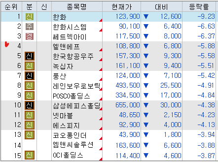 반면, 최근 강세였던 자동차, 조선, 방산 업종 등에서 차익실현 매물이 출회되며 하락