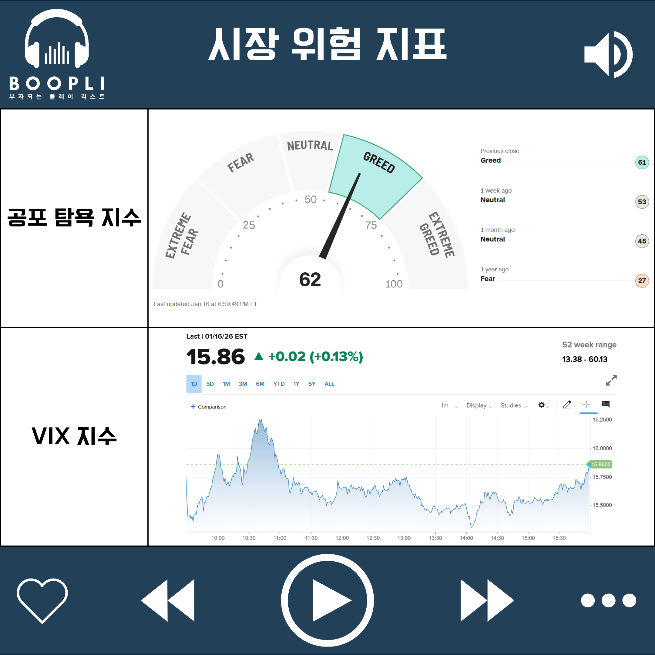 시장 변동성을 나타내는 VIX 지수는 강보합으로 큰 변동 없음