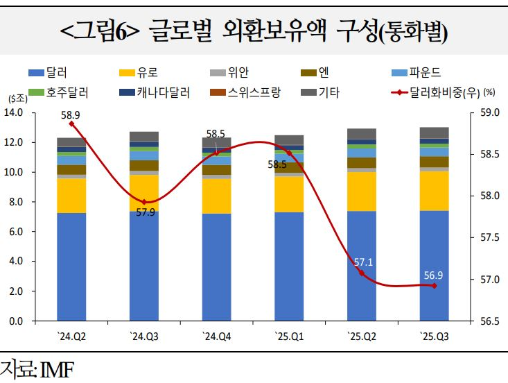 - 연준이 독립성을 완전히 상실하기는 어려우나, 물가상승률은 목표치(2%)를 상회할 것으로 보여 금 가격이 상승 압력을 받을 가능성(Citi). 최근 글로벌 외환보유액에서 금이 차지하는 비중은 `25년 2분기 24%에서 `25년말 29%까지 확대된 것으로 추정(JPMorgan)