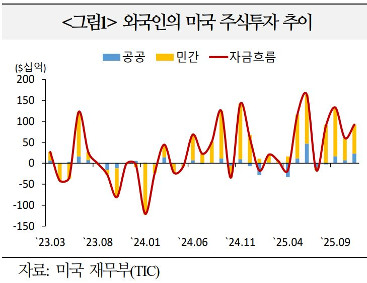 `26년에도 외국인의 미국 자산 수요가 유지될 것으로 예상되고 있으나, 높은 밸류에이션 부담, 연준 독립성 우려 등으로 자금흐름 변동성이 확대될 소지