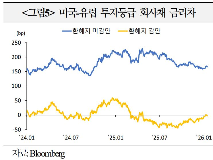 ㅇ 주요 외국인 투자자들의 미국 회사채 수익률이 환헤지비용을 감안하더라도 자국 회사채 대비 매력적인 수준에 근접. 가격에 민감한 민간 투자자들의 미국 회사채 수요가 확대될 가능성(JPMorgan)