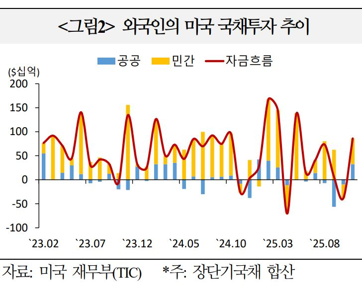 ㅇ 장기국채에서 민간 부문(10월 △$353억 → 11월 +$524억)과 공공 부문(△$248억 → +$332억)이 순투자 전환