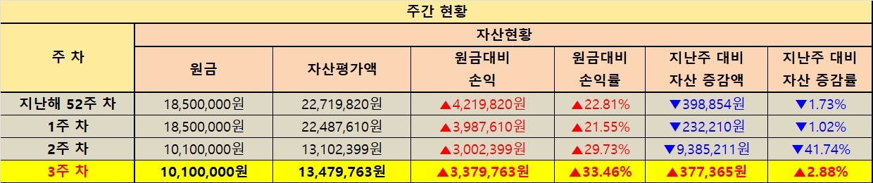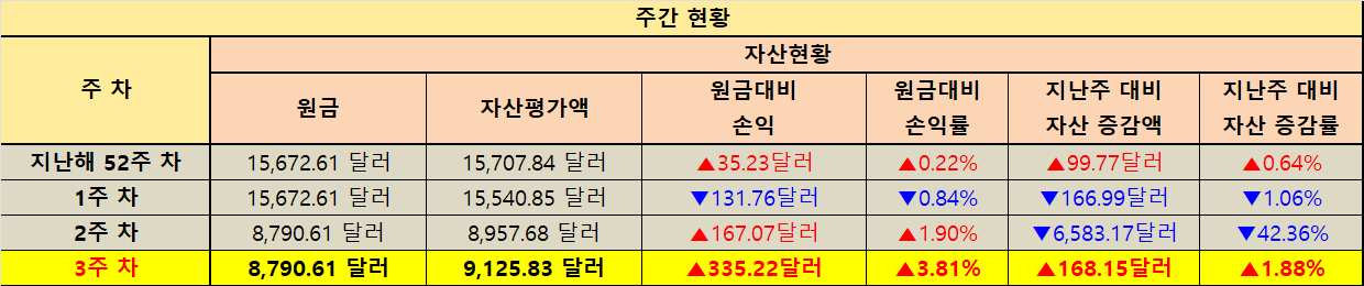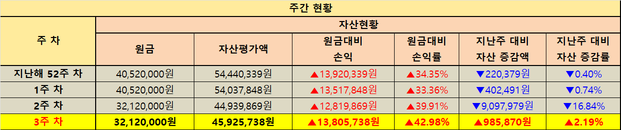 지난주 대비 자산 증감 현황