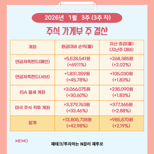 2026년 1월 3주 차 주식 가계부 결산 내용을 정리해 보았습니다.