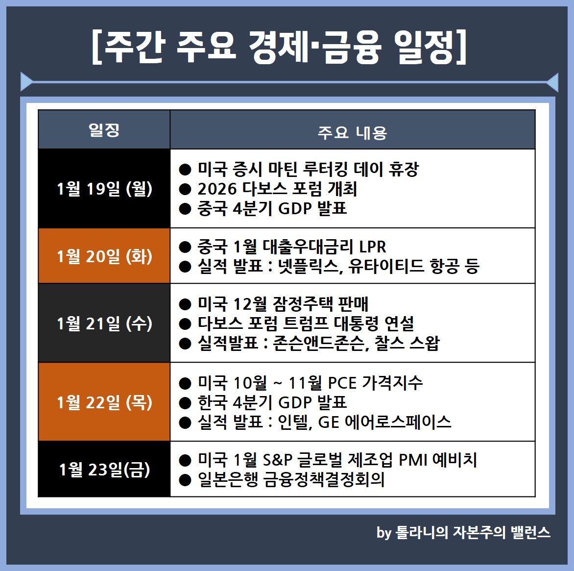 5) 2026 다보드포럼 개막. 한국 4분기 GDP 둔화폭도 주목