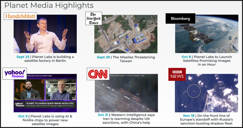 기술 및 인프라 측면에서도 의미 있는 진전이 있었습니다. 고해상도 위성 ‘펠리컨(Pelican)’ 2기와 광역 관측용 ‘슈퍼도브(SuperDove)’ 36기를 성공적으로 발사했고, 모두 정상 교신 단계에 들어갔습니다. 또한 독일 베를린에 차세대 고해상도 위성 생산을 위한 제조 시설을 신설해, 유럽 시장 수요에 대응하겠다는 계획도 공개했습니다.