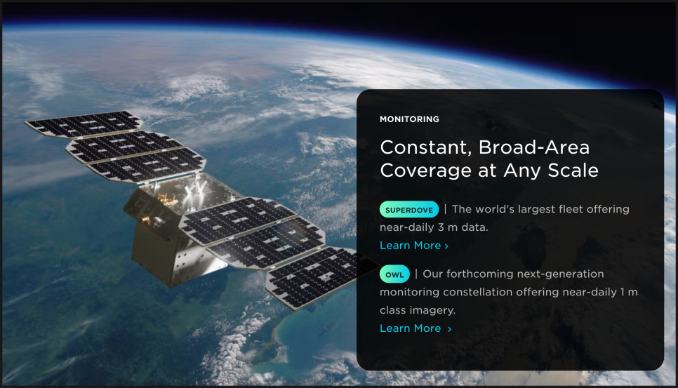 플래닛 랩스(Planet Labs)는 전 세계에서 가장 큰 규모의 지구 관측 위성 군집 중 하나를 운영하는 기업입니다. 거대한 위성 몇 대에 의존하는 방식이 아니라, 소형 위성을 다수 띄워 지구 전역을 매우 높은 빈도로 촬영하는 것이 특징인데요. 지역에 따라서는 거의 매일 지표 변화를 확인할 수 있다고 합니다.