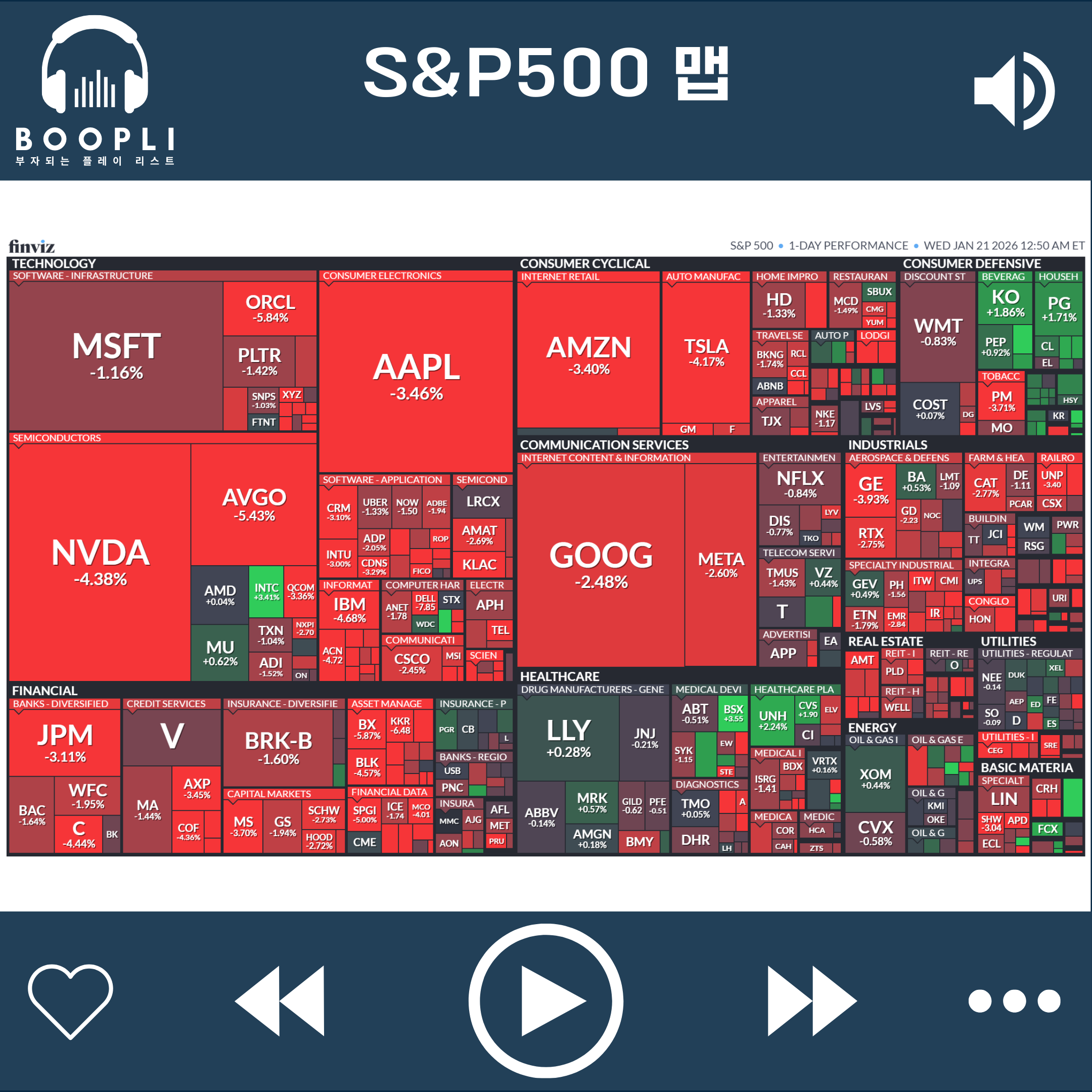 넷플릭스(NFLX) 그린란드 사태에 따른 시장 전반의 Risk-Off 심리로 하락 마감한 뒤, 장 종료 후 4분기 실적 발표에서 매출과 EPS 모두 양호했고 가입자 수가 3억 명을 돌파했으나 워너브라더스 인수에 따른 현금 부담과 향후 콘텐츠 투자 비용 증가에 대한 우려를 반영하며 시간 외 하락