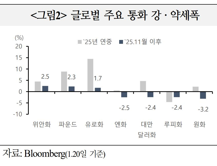 * 달러인덱스 예상 경로(Bloomberg Consensus, 1.20일 기준): (`26.Q1) 98.0 → (Q2)97.9 → (Q3)97.0 → (Q4) 97.2