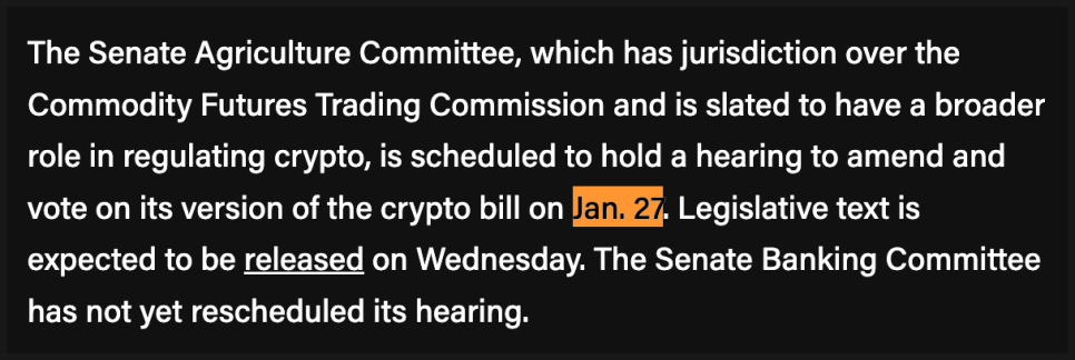입법 일정도 병렬로 움직이고 있습니다. 상원 은행위원회는 아직 표결 일정을 다시 잡지 못한 상태입니다. 상원 은행위원회 내부에서는 지금 상황에서 법안을 밀어붙이기보다는, 업계가 먼저 내부 갈등을 정리해야 한다는 분위기입니다.