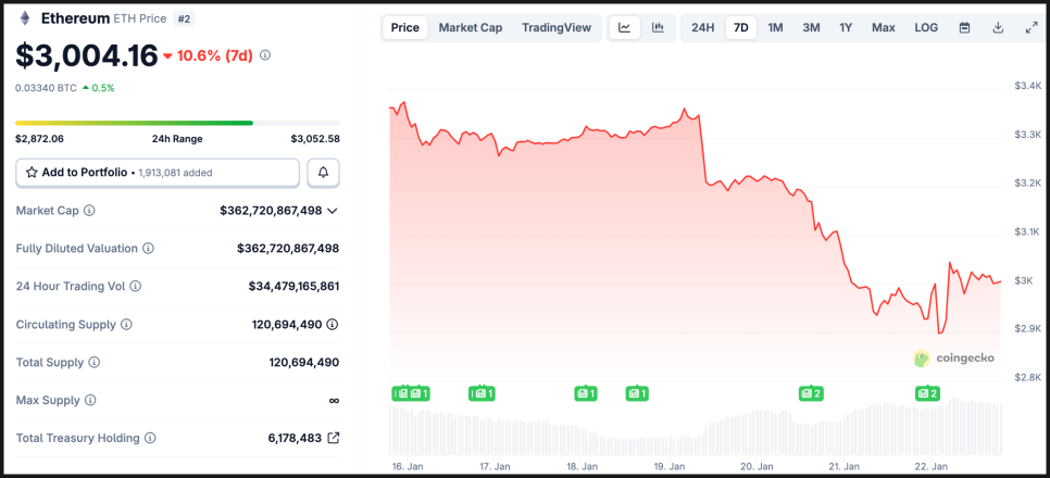 비트코인과 이더리움 가격이 한때 크게 밀렸다가 다시 반등했습니다. 계기는 도널드 트럼프의 발언이었는데요. 트럼프 대통령이 다보스포럼에서 그린란드와 관련된 관세 압박 발언을 누그러뜨리자, 시장 분위기가 빠르게 바뀌었습니다.