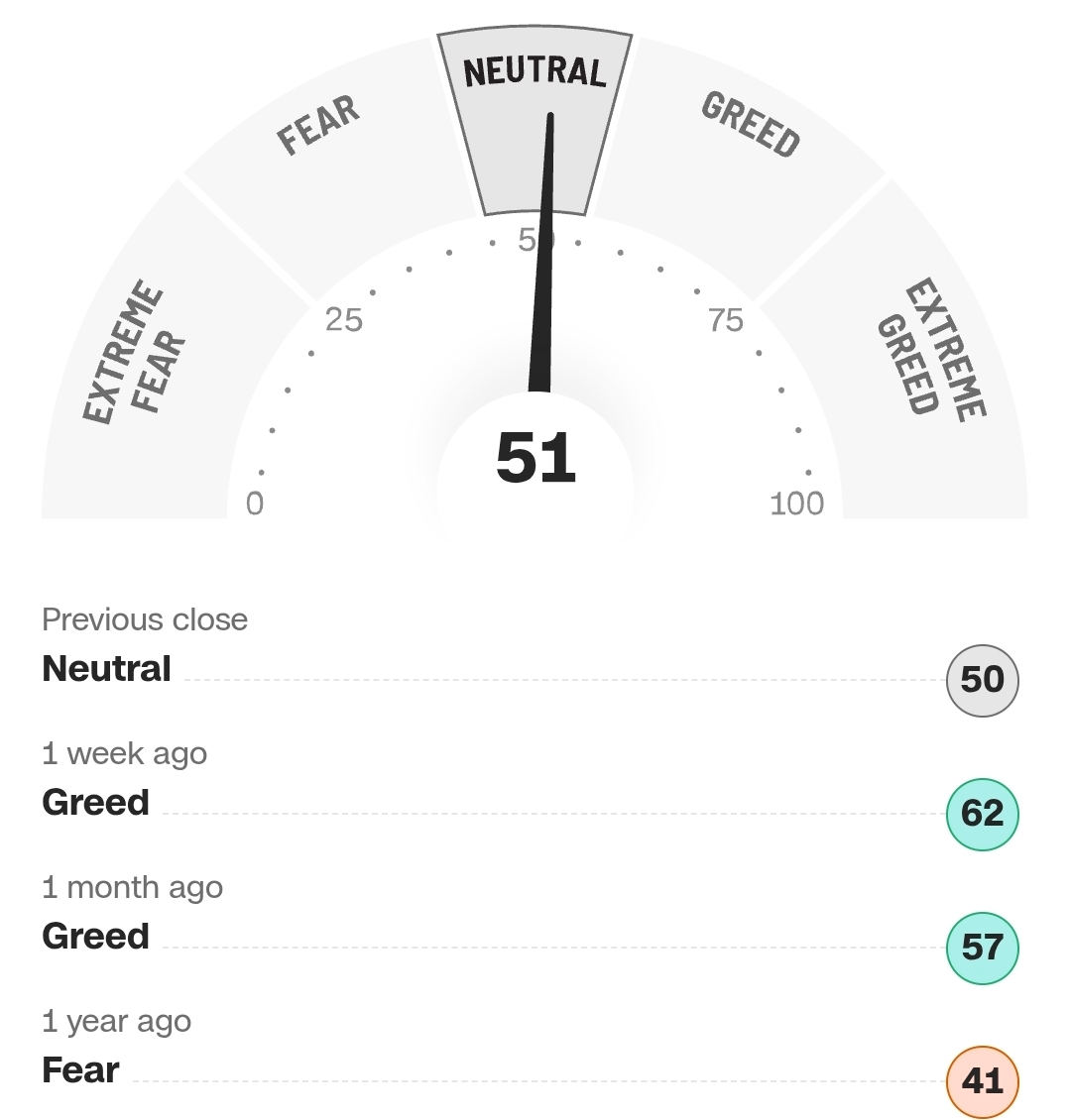 관세 리스크가 일시적으로 해소되면서 셀 아메리카 공포가 잦아들고 시장은 다시금 성장성에 주목하는 모습입니다. 하지만 안전자산인 금 가격이 사상 최고치를 경신했다는 점은 투자자들이 여전히 달러 가치 하락과 인플레이션 그리고 정부 부채 문제에 대해 깊은 의구심을 가지고 있다는 증거이기도 합니다. 공포탐욕지수가 중립 수준인 51을 기록하며 시장의 심리가 극단적 낙관보다는 신중한 탐색 단계에 머물러 있다는 점도 이를 뒷받침합니다. 변동성 지수인 VIX가 하락하며 안정을 찾는 듯 보이지만 물가 지표 발표를 앞둔 폭풍전야와 같은 긴장감이 느껴집니다.