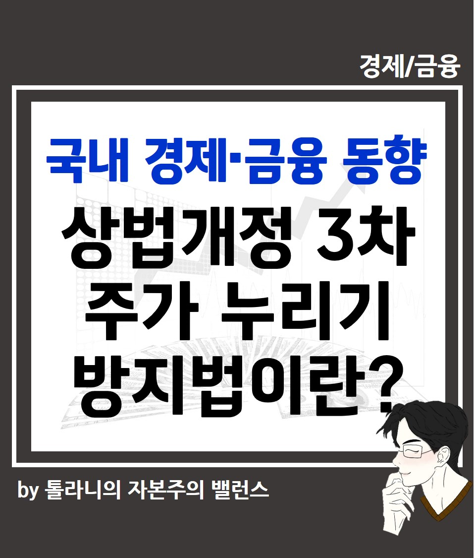 이에 ‘상법개정 3차 주가 누리기 방지법’ 관련하여 언론 보도 자료를 통해 좀 더 자세히 알아보도록 하겠습니다.