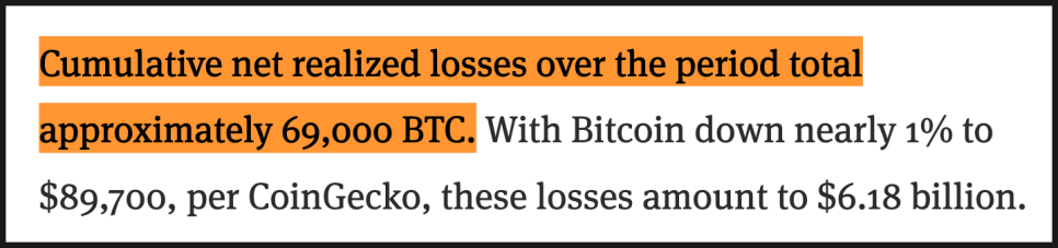 한편 비트코인이 9만 달러 아래로 밀리면서, 온체인 상에서 이익 실현 국면이 끝나고 손실 실현 국면으로 전환됐다는 신호가 처음으로 나타났습니다. 이런 흐름은 2023년 말 이후 처음입니다.