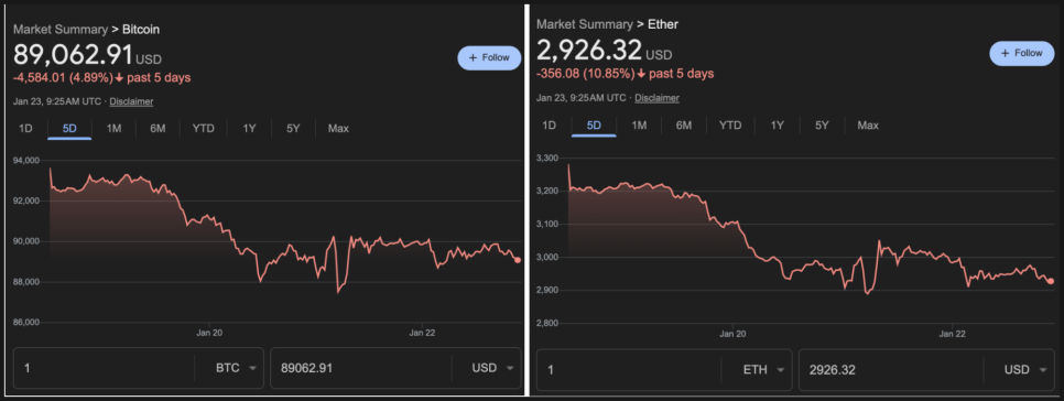 2026년 1월 23일 핵심 암호화폐 이슈 정리하겠습니다.