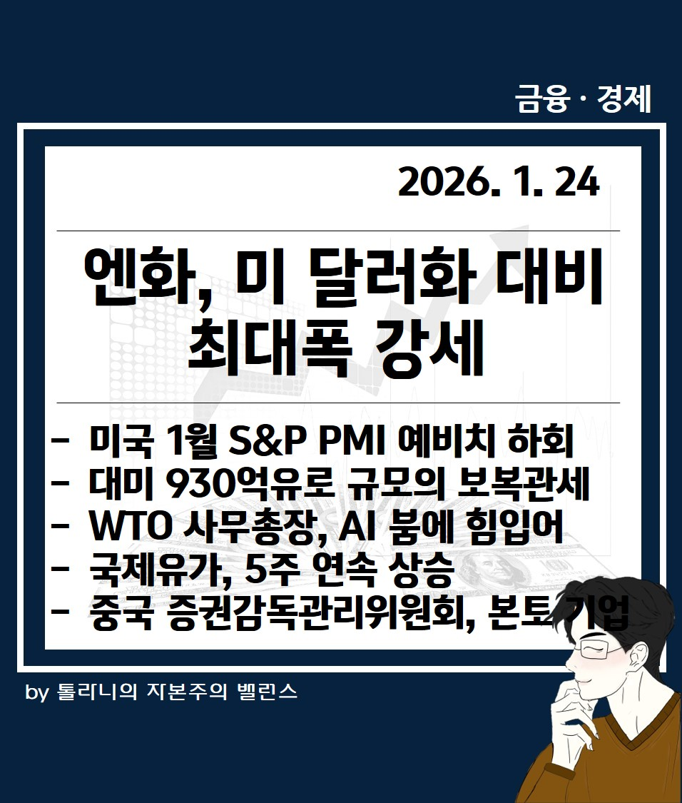 지금까지 '엔화, 미 달러화 대비 최대폭 강세, 미국 1월 S&P 글로벌 PMI 예비치 예상 하회 등 뉴욕 증시 및 주요 국가 경제·금융 동향' 관련하여 알아보았는데요.