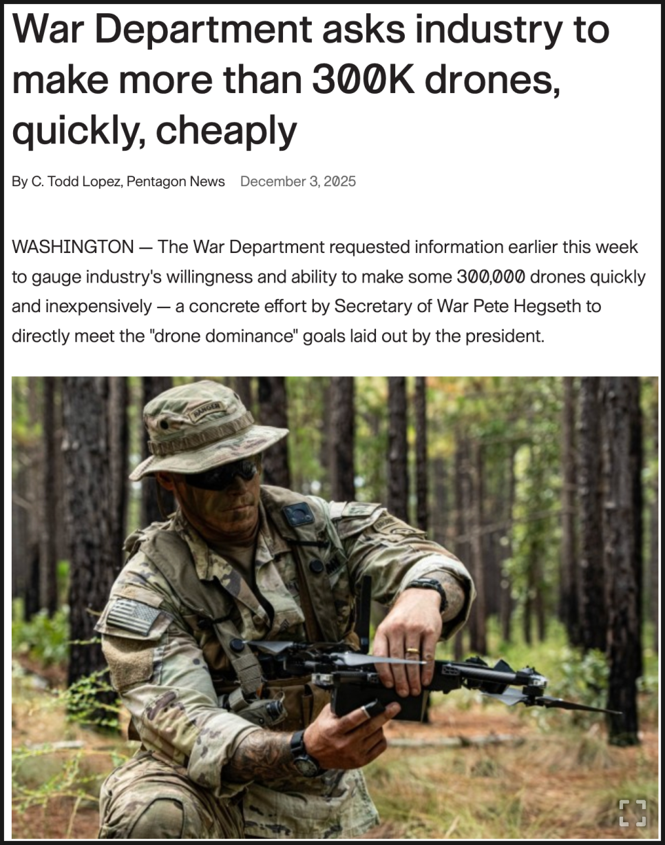 참고로 미 국방부는 지난달 민간 기업들을 대상으로 “신속하고 저렴하게 30만 대의 드론을 생산할 수 있는지”에 대한 정보 요청을 발송했습니다. 지난해 11월, 미 육군이 향후 2~3년 안에 드론 100만 대를 추가 확보하길 원한다는 보도가 나온 이후의 소식입니다.