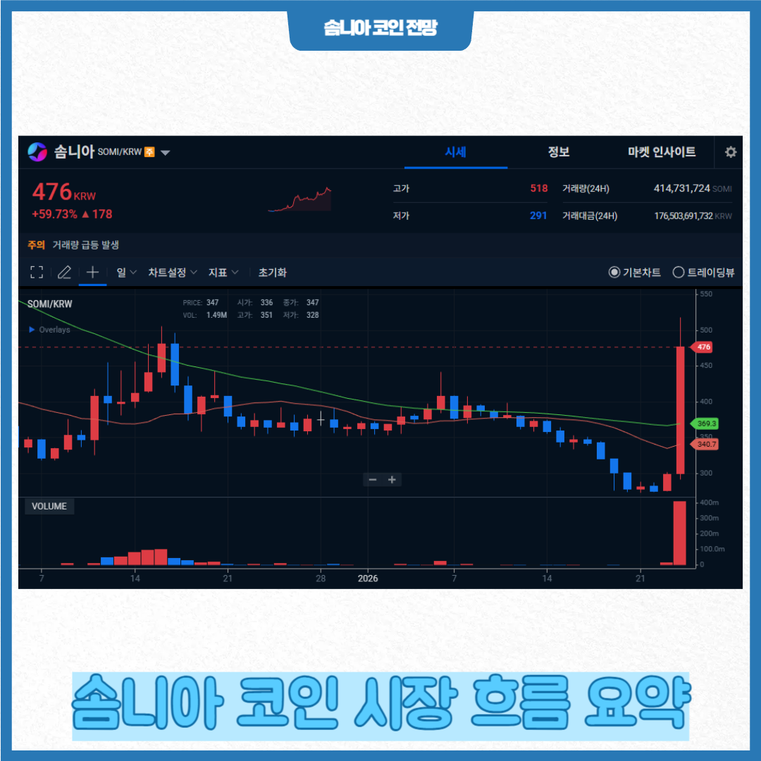 전체 가상자산 시장 흐름에 크게 영향을 받는 특성상 비트코인, 이더리움을 포함한 대형 자산들의 방향성이 SOMI에도 파급될 수 있습니다.