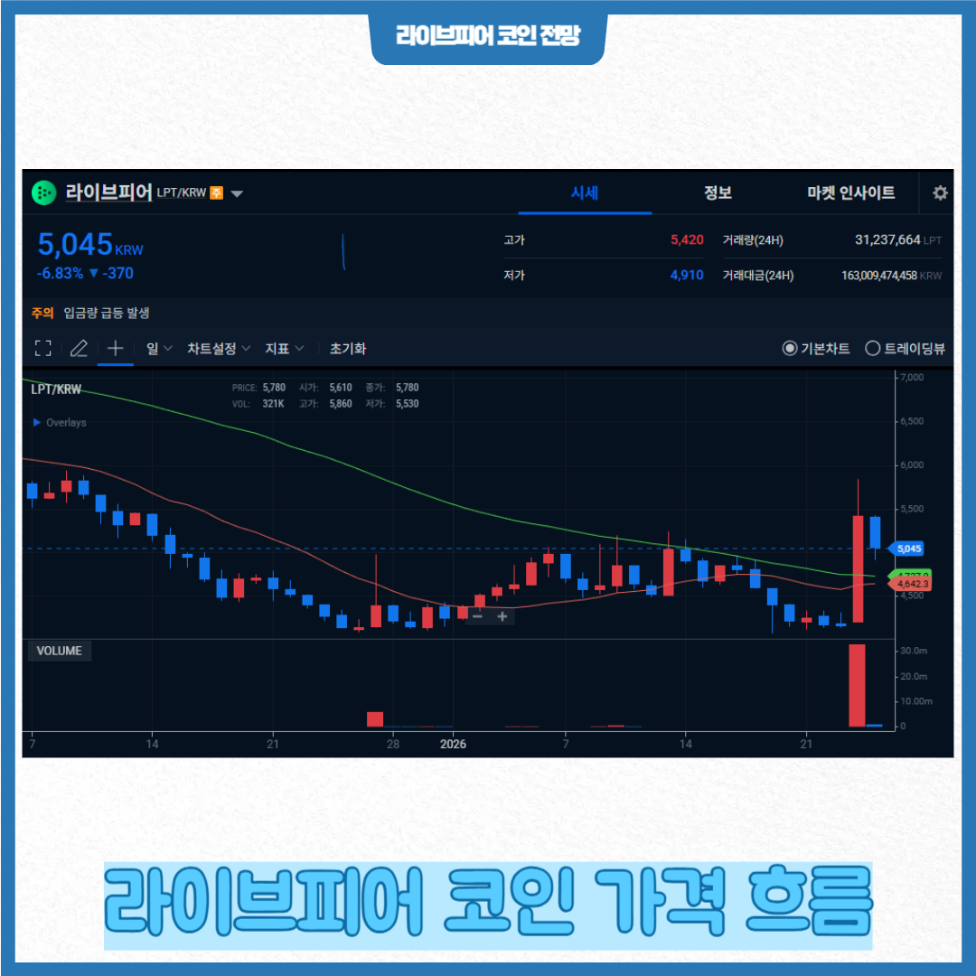 2025년 상반기 라이브피어는 업비트 상장, AI 섹터 편입 등의 호재로 가격이 급등하는 모습을 보였습니다. 특히 7일간 약 56% 급등한 사례가 보고되며 투자자 관심이 높아졌습니다. 이 같은 상승은 글로벌 거래소 상장 확대와 기관의 기술 섹터 분류가 주된 원인으로 분석됩니다.