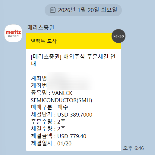 SMH라는 반도체 ETF에 간접투자 중입니다.