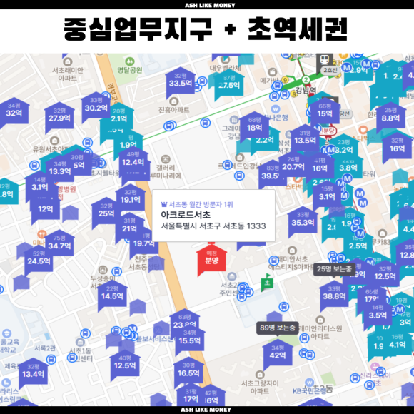 입지를 보면 신분당선, 2호선 강남역 바로 앞이고 서이초를 안고 있는 초품아이기도 하다. 해당 구역은 중심업무지구 구역이라 직주근접이 가능하지만 유동인구가 많아 다소 시끄러울 수 있지만 상권이 크게 발달하였다. 강남백화점과 이마트, 코스트코, 세브란스 병원, 가톨릭대 성모병원 등의 상권을 보유하며 강남 8학군 소속으로 교육으로도 매우 좋은 곳이다. 하지만 강남에 분양하는 단지들은 청약당첨 점수가 최소 74점부터 시작하여 최고 84점을 모두 맞출 것으로 보인다.