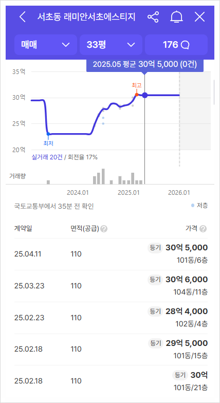 바로 앞 아파트는 30억 이상으로 2016~2020년에 준공되었다. 평당 1억 이상을 기록하고 있어 아크로 드 서초 역시 59타입이 19억 수준으로 분양되었으므로 25억까지 오를 확률이 높기에 6억 이상의 차익을 얻을 것으로 보인다. 조합원들의 경우 59타입을 13억 수준으로 분양받았기에 10억 이상의 차익을 보일 것이고 84타입 조합원은 18억 정도로 분양받았기에 12억 이상의 차익을 올릴 것으로 보인다.