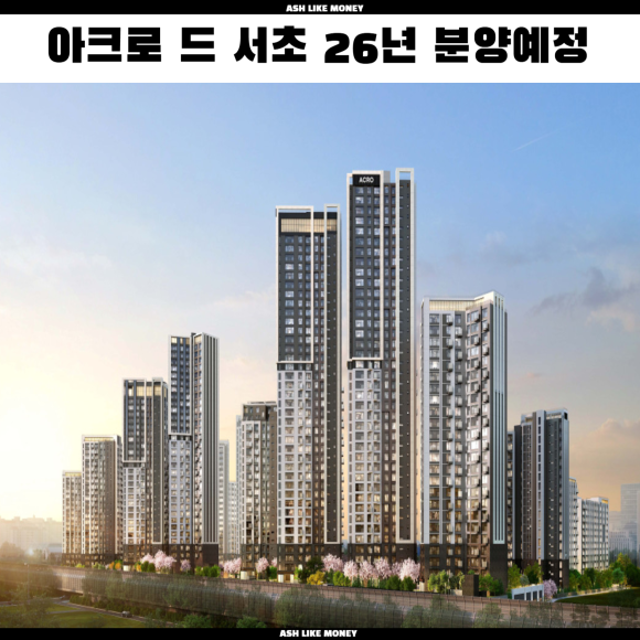 아크로 드 서초는 원래 25년 말에 분양이 예정되었으나 미루어져 26년 1월에 청약이 나올 가능성이 높아진 아파트이다. 서초동 강남역 직주근접 끝판왕의 아파트로 서초신동아 아파트를 재건축하여 탄생한 아파트이다. 재건축초과이익환수제도 피하였고 임대주택 세대도 없지만, 로또청약인 만큼 분양가 상한제 때문에 조합원들의 분담금은 더 늘어났다. 근처 아파트들을 살펴보면 래미안 서초에스티지, 래미안 리더스원, 래미안 서초 에스티지S와 같이 삼성물산이 전부 다 시공했다. 그리고 시세는 기본 30억 이상이라 평당 1억 이상을 기록한다.