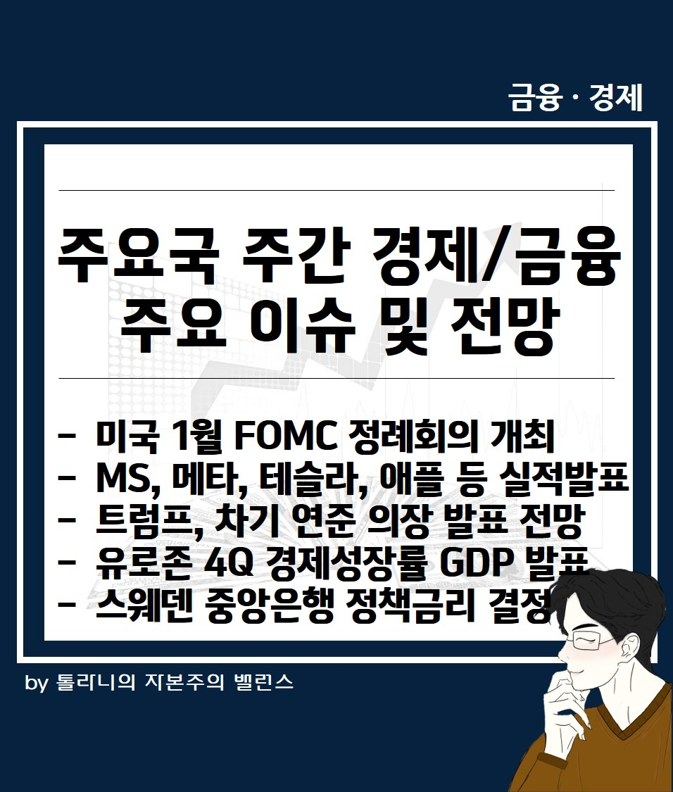 이에 ‘미국 연준 1월 FOMC 정례회의, 차기 연준 의장 발표 가능성 등 주간 미국 증시 일정 및 주요 국가 경제/금융 이슈’ 관련하여 언론보도 및 국제금융 센터 보고서를 통해 좀 더 자세히 알아보도록 하겠습니다.